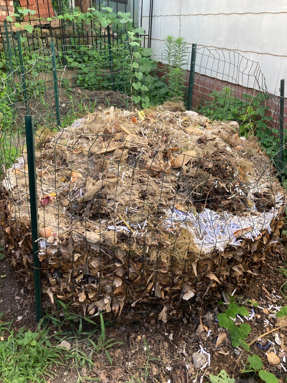 Gervais composts at home and has had great success. He doesn’t even follow all the “rules”; his composter is made of chicken wire, he puts meat scraps in the pile,(so far, no strange critters have shown up) he doesn’t turn the pile on a regular basis and he doesn’t even have the exact parts of “brown” and “green” waste, but his compost is beautiful!